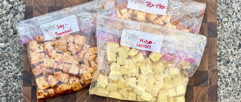 Transfer mixture to a ziplock bag, add tofu, and seal.